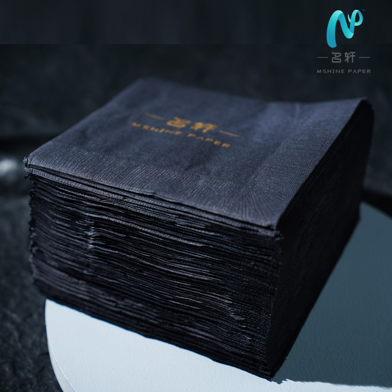 Mingxuan Custom Cocktail Papier Servetten Drank Servetten Voor Restaurant Zwarte Servetten Met Logo Zwart Weefsel